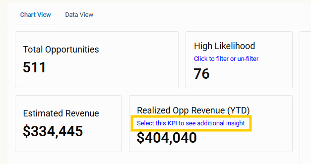 Realized Opp Revenue (YTD) — select this KPI to see additional insights
